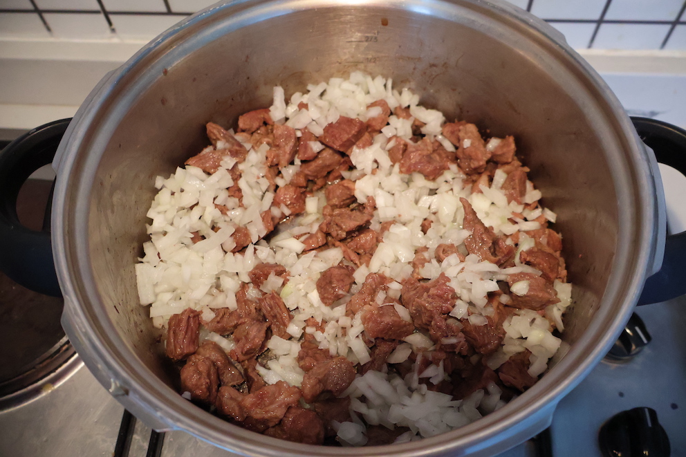 - Tencereyi kızgın ateşte ısıtalım. Etleri tencereye koyalım ve pişirelim. Etler suyunu saldıktan sonra tencerenin kapağını kapatalım ve orta ocakta kısık ateşe alalım, etler suyunu salıp geri çekene kadar pişirelim.