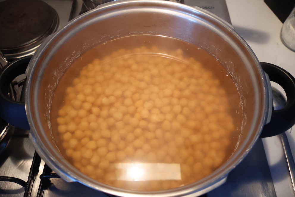 - Yine bir gece önceden kuru fasulyeyi yıkayıp soğuk suya koyalım ve bekletelim, nohutu sıcak suyla yıkayalım ve sıcak suda bekletelim.