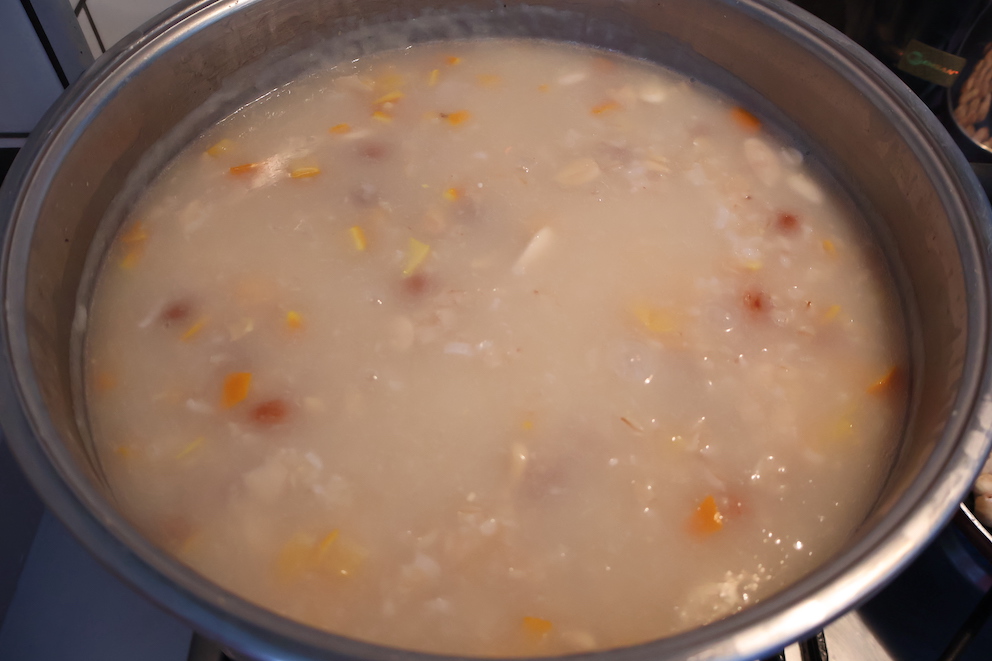 - Kuru fasulyeyi ve 2 litre kaynar suyu aşureye ekleyelim ve tencerenin kapağını kapatarak 10 dakika daha kaynatalım.