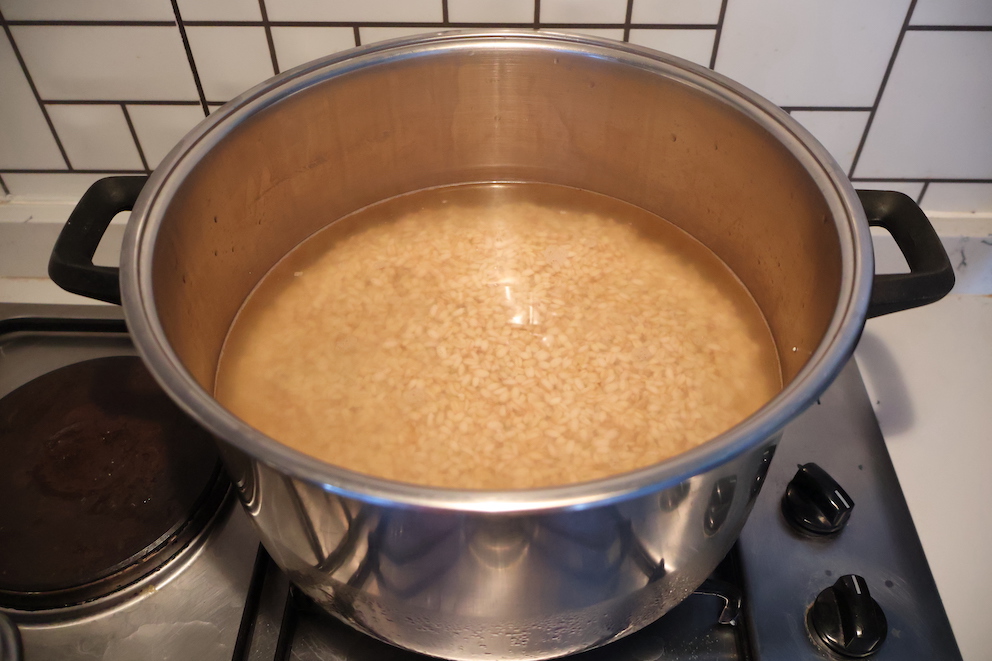 - Buğdayı büyük bir tencereye koyup 4 litre kaynar su ekleyelim ve 25 dakika tencerenin kapağı kapalı olarak kaynatalım.