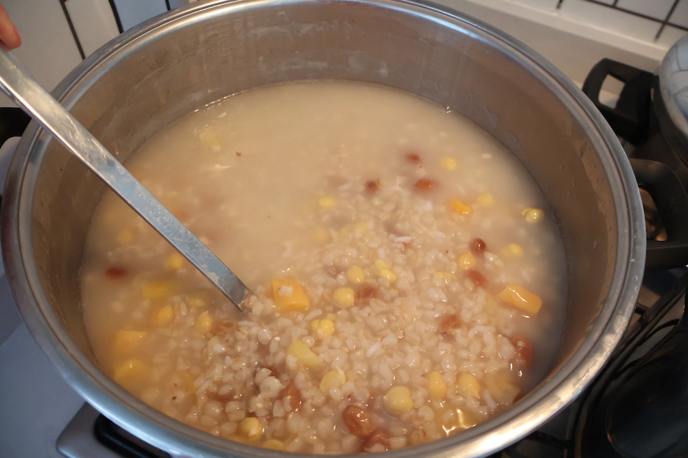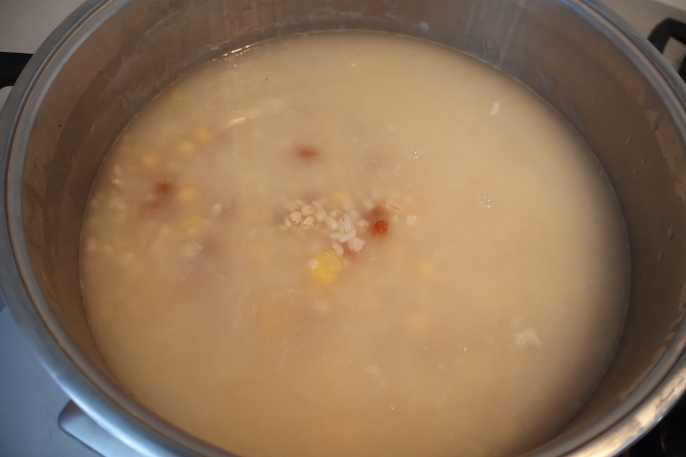 - Nohutu aşureye ekleyelim ve tencerenin kapağını kapatarak ve ara ara karıştırarak 10 dakika kaynatalım.