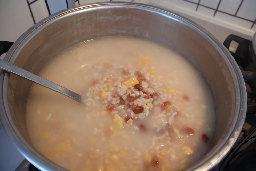 - Suda bekleyen kuru kayısıları süzelim, pirinçle birlikte kaynayan aşureye ekleyelim ve ara ara karıştırarak tencerenin kapağını kapatarak 5 dakika daha kaynatalım.