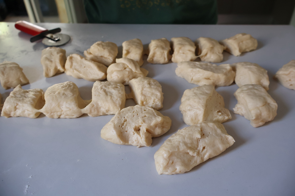 - Hazırladığımız hamuru minik sandviç topları olacak şekilde kesip şekil verelim ve fırın tepsisine dizelim.