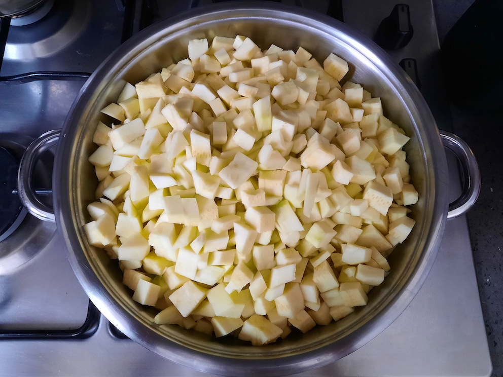 - Kabakları küçük küpler şeklinde keselim.