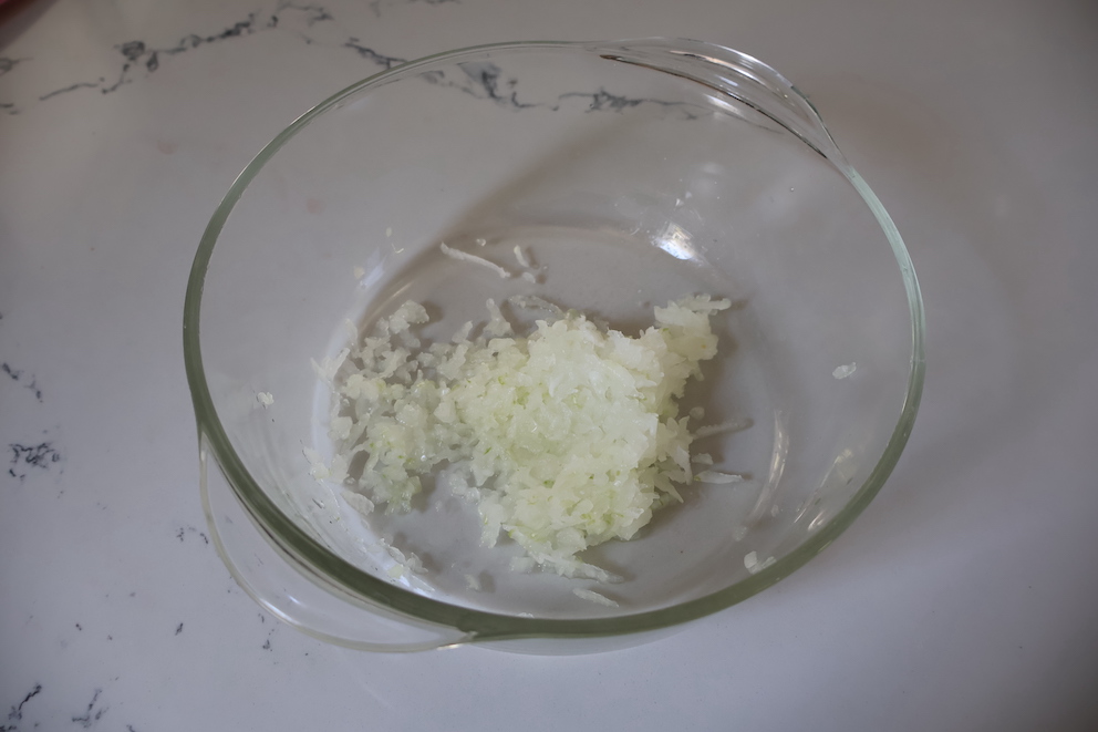 - Soğanı rendeleyelim ve bir süzgeç yardımı ile suyunu sıkalım.