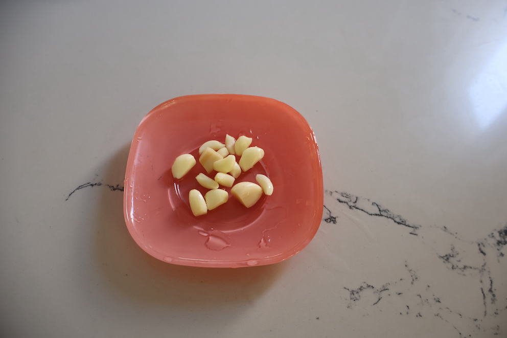 - Sarımsağı ikiye / üçe bölerek doğrayalım.