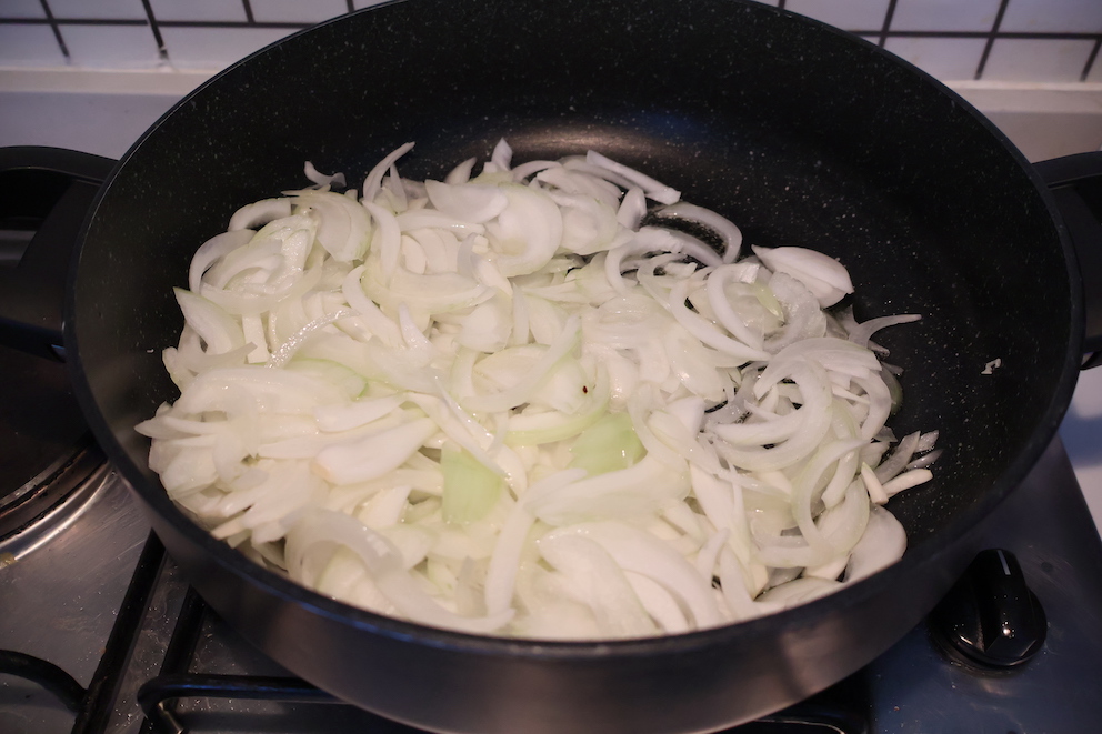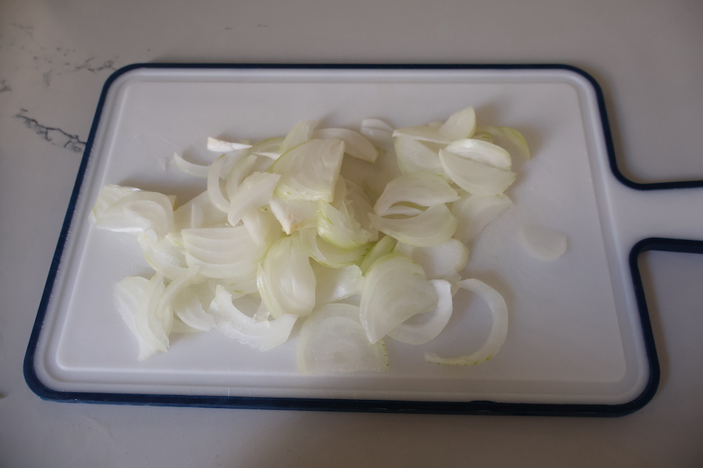 - Soğanı yarım ay şeklinde ince ince doğrayalım.