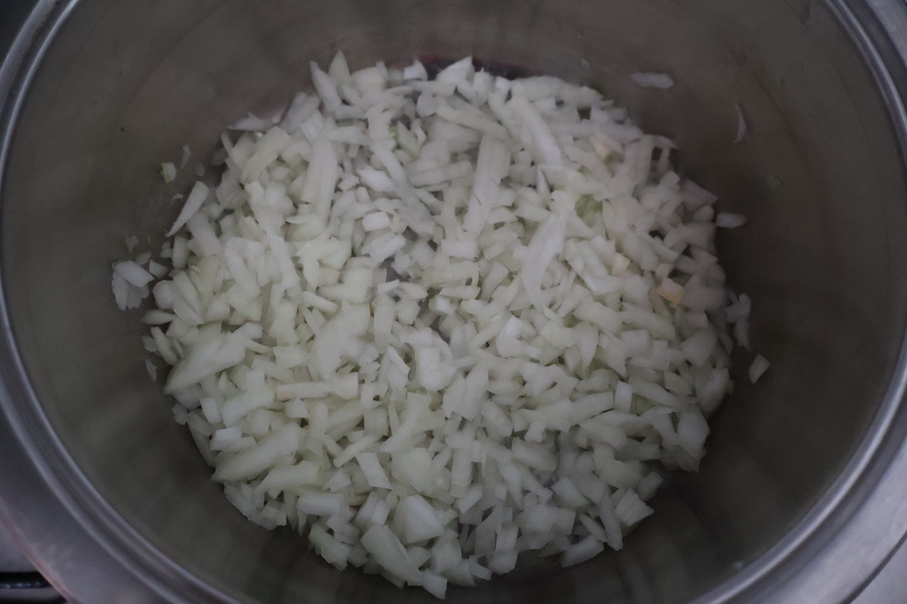 - Bir tencereye yağı ve doğranmış soğanları koyalım. Soğanlar pişene kadar kısık ateşte kavuralım.