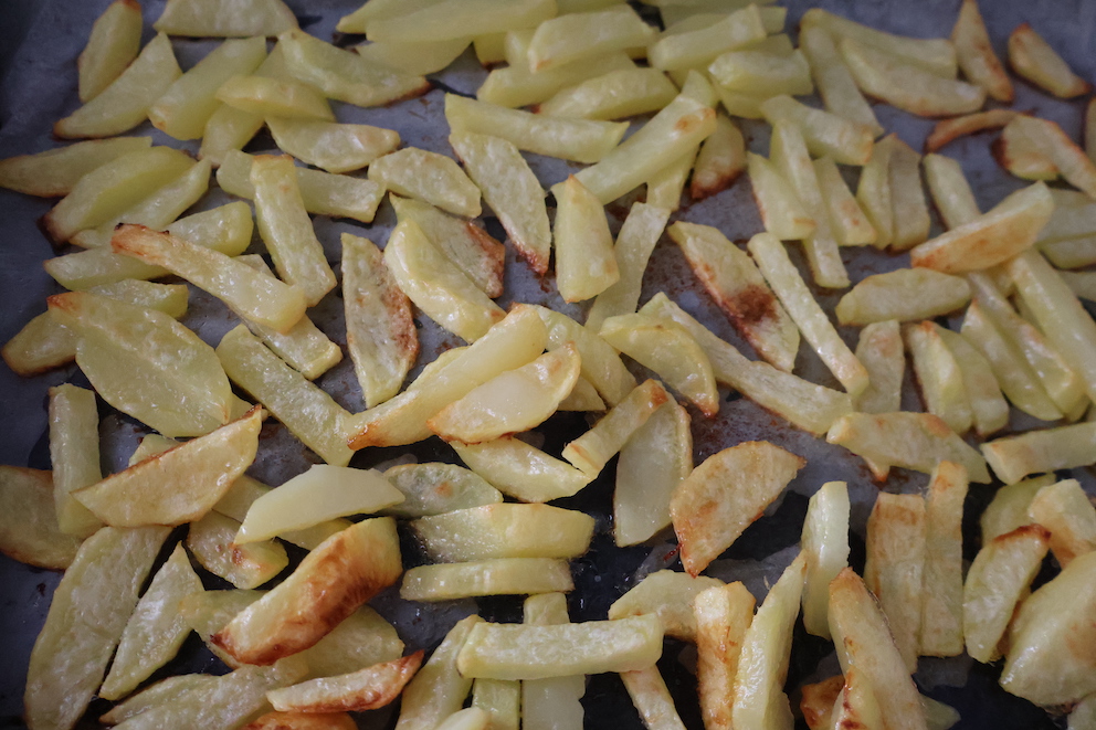 - Patatesleri yıkayıp soyalım ve dilimleyelim. Dilimlediğimiz patateslere yağ ve tuz ekledikten sonra önceden ısıtılmış fırında 220°'de 40 dakika pişirelim.